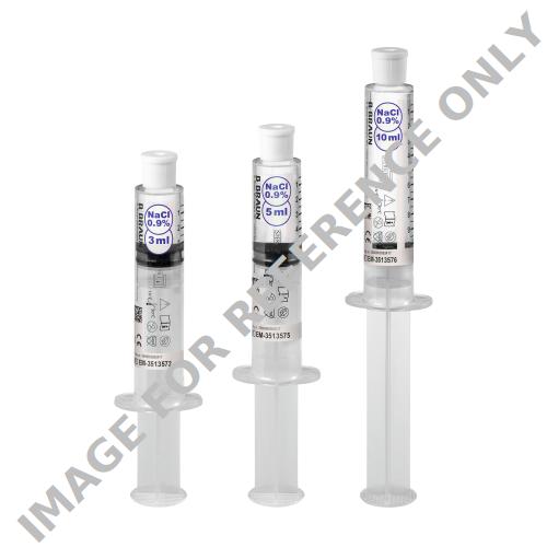 Ferdigfylt skyllesprøyte NaCl 9mg/ml, klar til bruk. Beskyttelseshette som fullstendig dekker luer-tuppen på sprøyten. Antirefluksteknologi. Tydelig differensiering av de tre fyllevolumene 3ml, 5ml og 10ml. Lavt trykk ved skylling. God visuell inspeksjon av innhold. Sprøytestempel glir lett. Steril løsning og væskepassasje, usteril utvendig overflate.